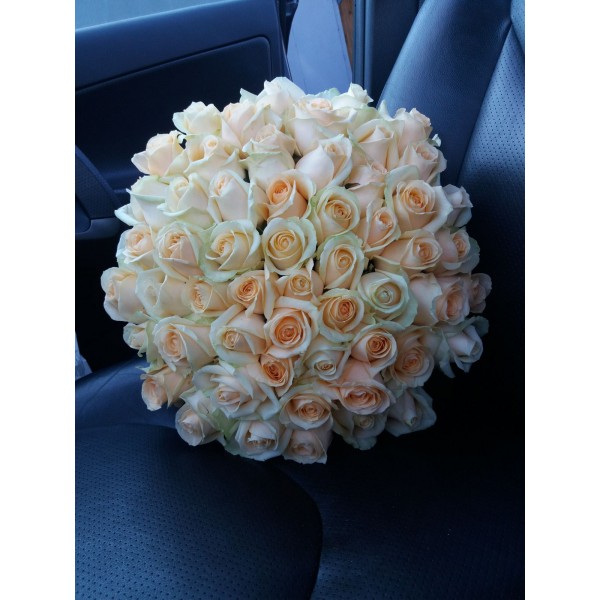 Букет из 55 роз Аваланж Пич 60см, при заказе скидка 10%.